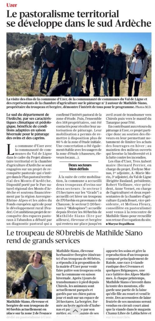 À Uzer, une belle dynamique est en marche : élus, agriculteurs et acteurs locaux s’unissent pour redonner vie aux terres grâce au pastoralisme. Profitant d’un territoire idéal pour le pâturage hivernal, le projet permet de réhabiliter des espaces laissés à l’abandon tout en soutenant les éleveurs.